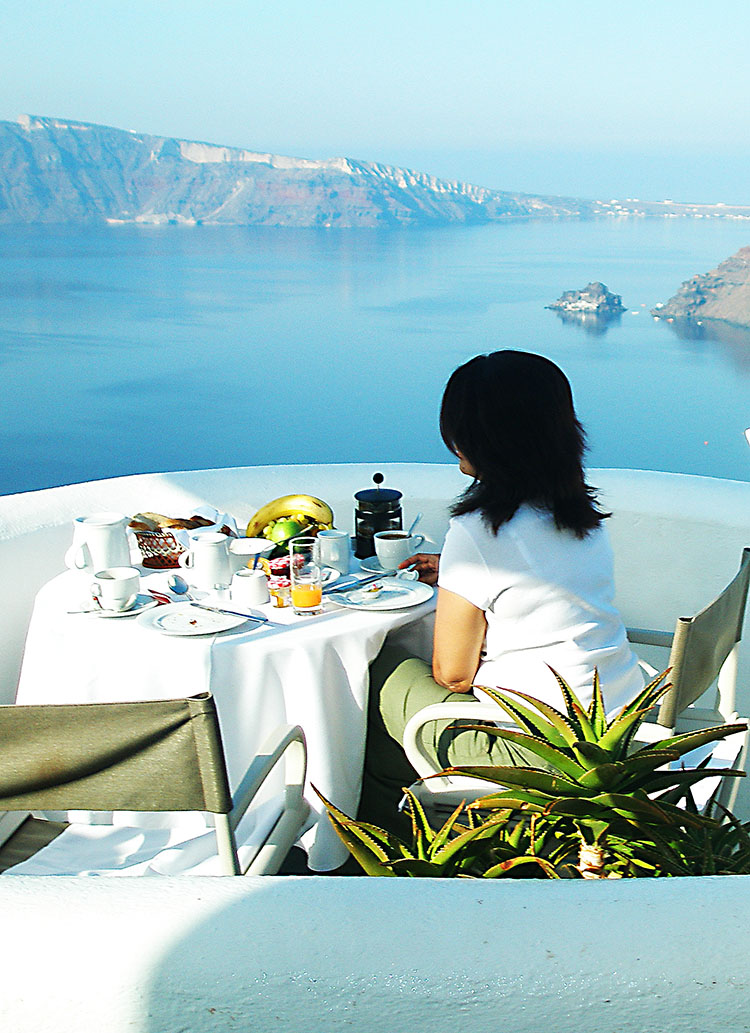 Your photo brought back memories of our European breakfasts overlooking the sea. We haven’t been to Santorini yet, but would like to go.