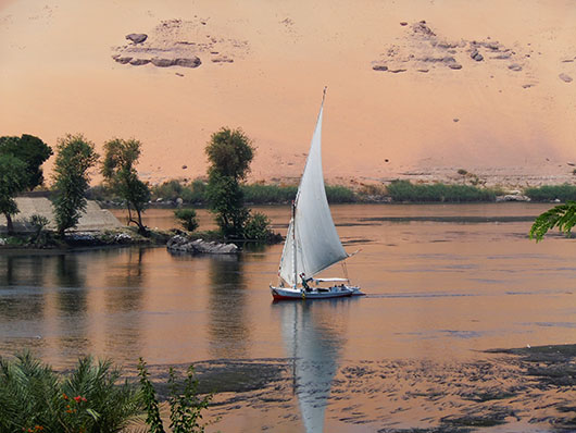 What can be more dreamy and romantic than floating down the Nile in your private felucca? This image is evocative of the burnished hues of the Nubian landscape and the glorious Aswan sunsets.