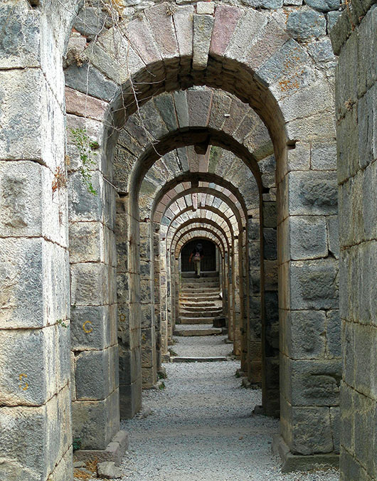 A few majestic marble columns of the Temple of Trajan still stand in proud defiance of the annihilating power of earthquakes and conquerors. And beneath, is this amazingly well preserved vaulted foundation called the Tunnel of Trajaneum.