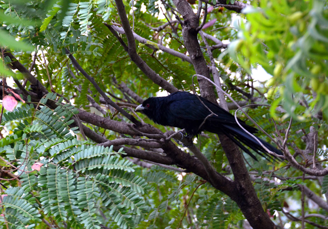 Her inky black, macho mate thought it beneath his dignity to even grace my backyard with his presence, and remained on his perch on the gulmohar tree out front, summoning her every few minutes, with his raucously melodious whistle.