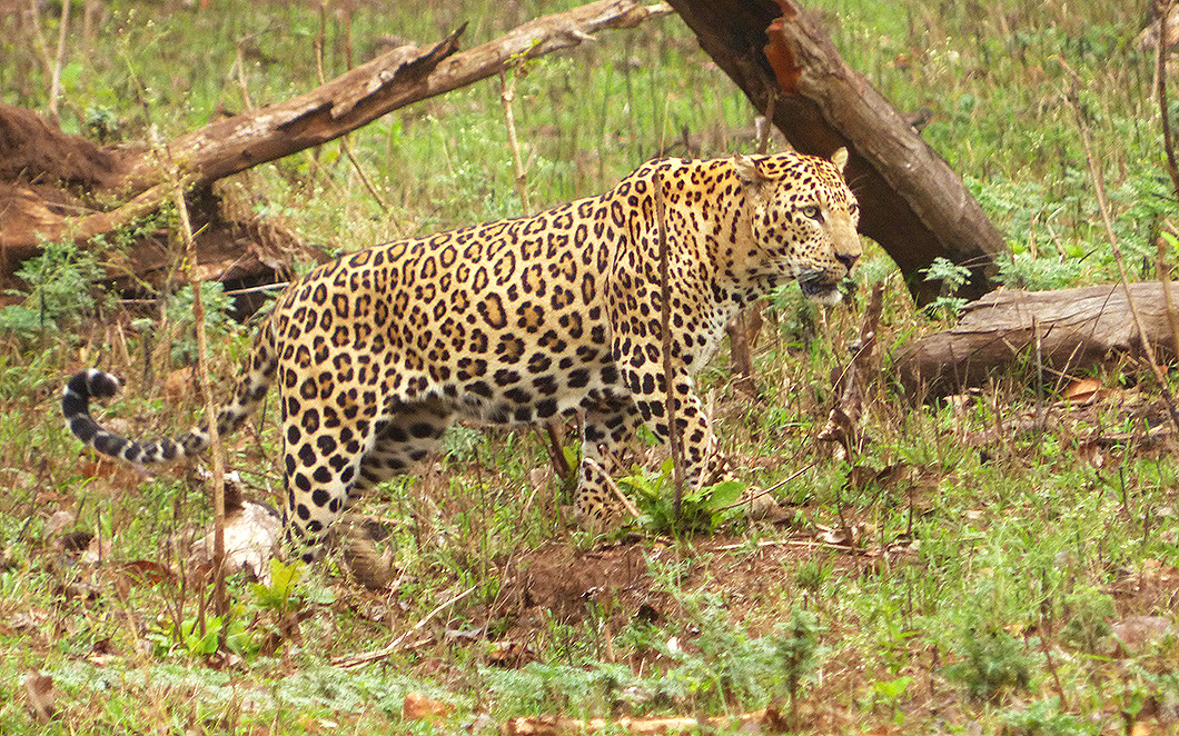 To see a tiger in the wild has been a lifelong dream of mine and when a dear friend invited us to join him for a safari at the Nagarhole (Kabini) reserve near Mysore, R & I readily agreed. Mr. Tiger stubbornly refused to make an appearance but we were amply compensated by the sight of Mr. Leopard below, who cavorted before us for a good 45 minutes, before strolling off nonchalantly into the bushes!