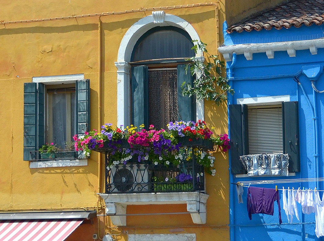4. Oh my, the colours seem to jump right off the screen! And what a striking contrast to the murky waters of the lagoon. I wonder why the church and the palazzo remained unpainted – but they do provide visual relief from all the competing colours. I have a feeling those two were your favourite buildings in the whole town. 🙂