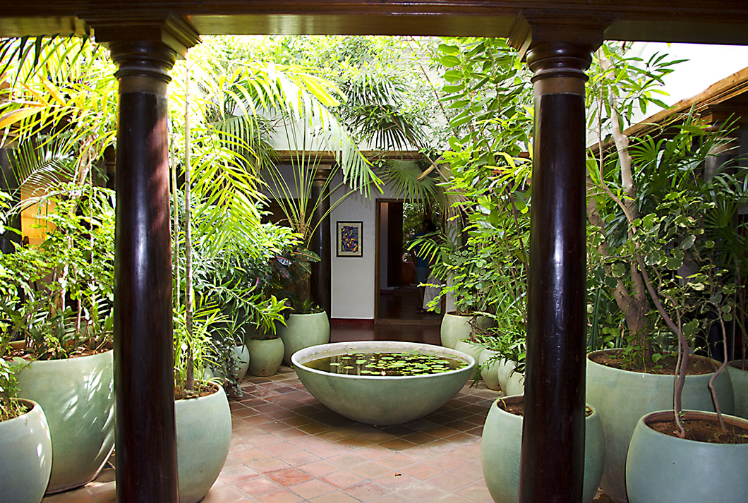 Internal courtyard of Maison Perumal, a hotel on Vysial street