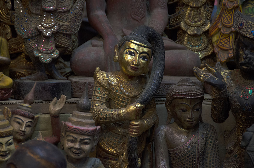 This ubiquitous shopping stop on our shore excursion from the Irrawaddy Explorer, was one I actually had to be dragged away from. It was more a warehouse overflowing with artefacts than a showroom, and utterly fascinating. No I didn’t buy a single puppet, although I shamelessly helped myself to the complimentary juice and coconut cakes while the others did.