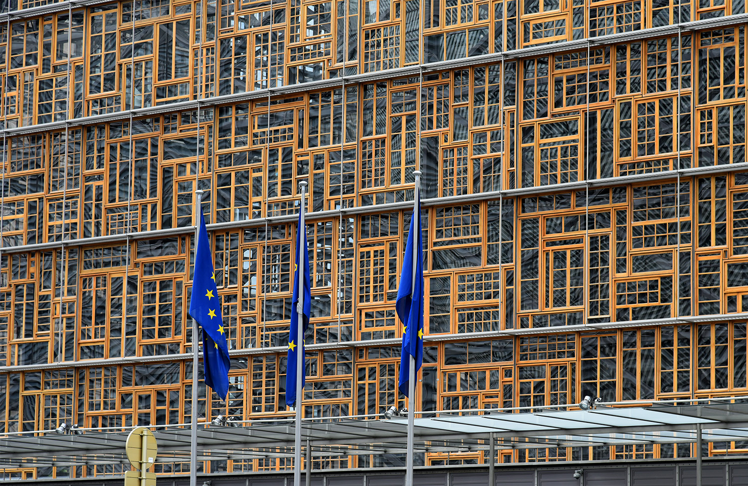 Beneath Blue Flags. The Berlaymont Building is the headquarters of the European Commission.