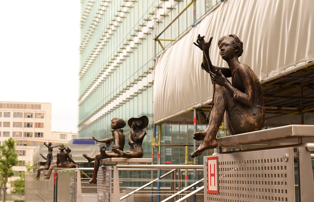 Sculptures of young girls by sculptor René Julien, outside the EU Charlemagne Building.