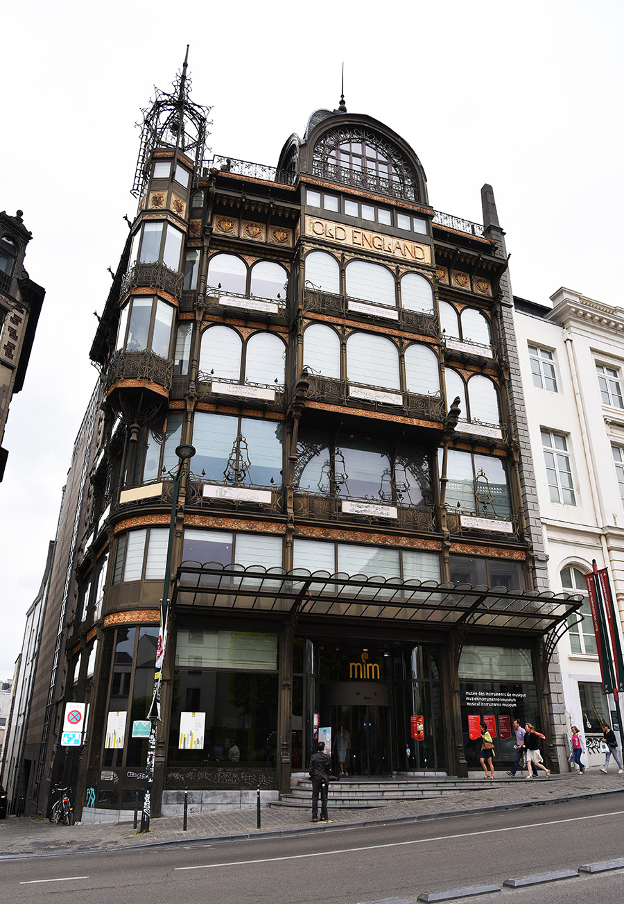 Around the time (1973) the Old England department store designed by Saintenoy in 1899 ceased trading, its wrought iron was stripped and its facade painted white in accordance with the building code of the royal district.  The decision by the state to acquire the decaying building to house the Musical Instruments Museum in 1989, led to a decade long restoration to its old glory.