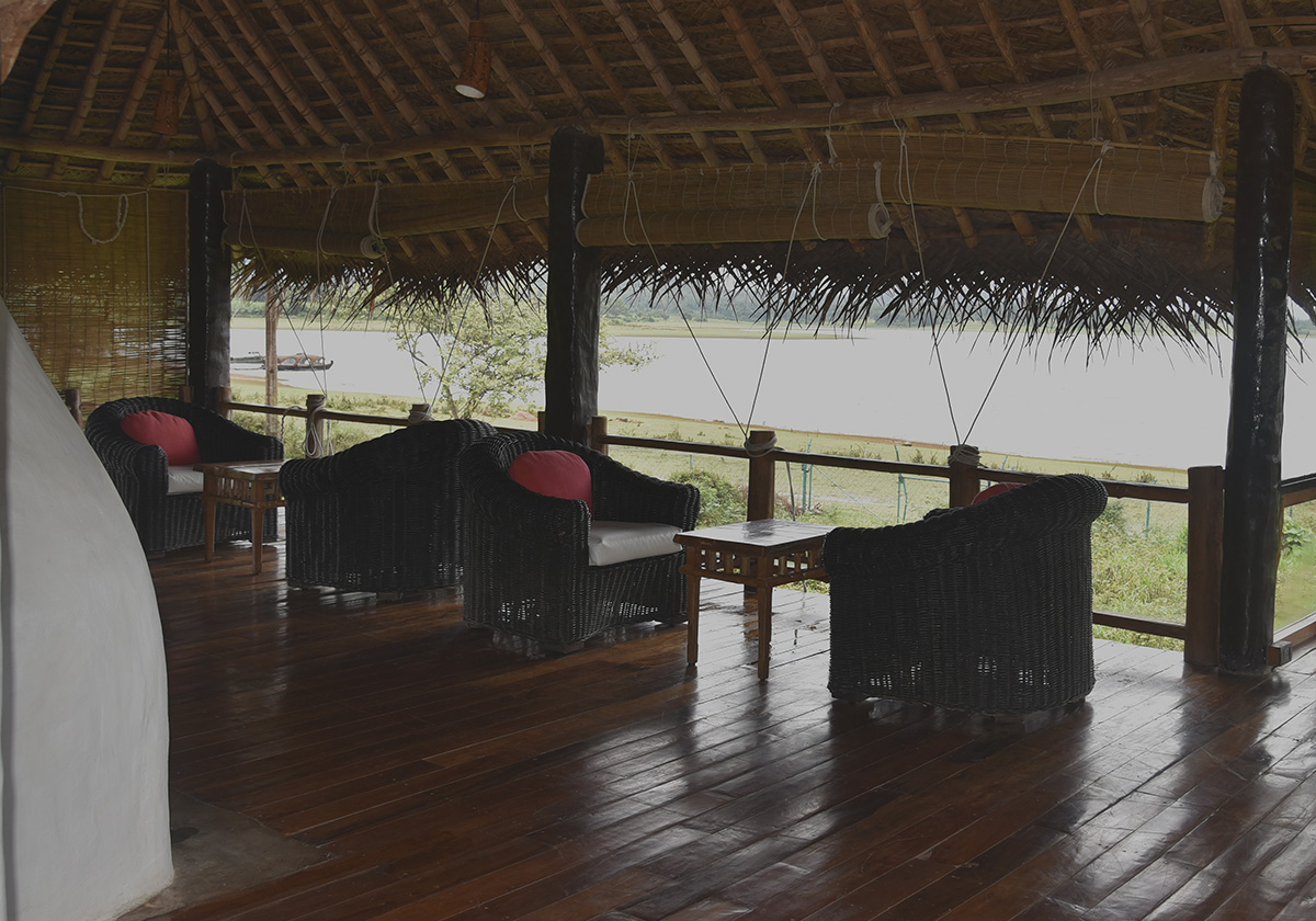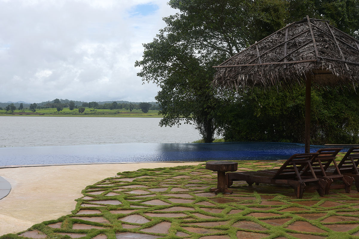 The accent is on rural rustic as opposed to the royal theme of their Hampi resort. Clay and ochre mud walls and thatched roofs blend seamlessly with the riverine landscape. Cement floors recreate the cured cow dung floors of tribal houses in colour and texture. All vertical supports are slender logs of wood. The ceiling is lined with wicker mats. Even the sliding wooden ‘bolts’ across doors are inspired by village woodwork.