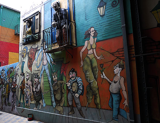 La Boca in Buenos Aires is a colourful barrio full of brightly painted houses and interesting graffiti. This distorted caricatures of street performers is a particular favourite. Read my full account of this Barrio of Kitsch here. Graffiti, La Boca – Buenos Aires, ArgentinaHave a great weekend!